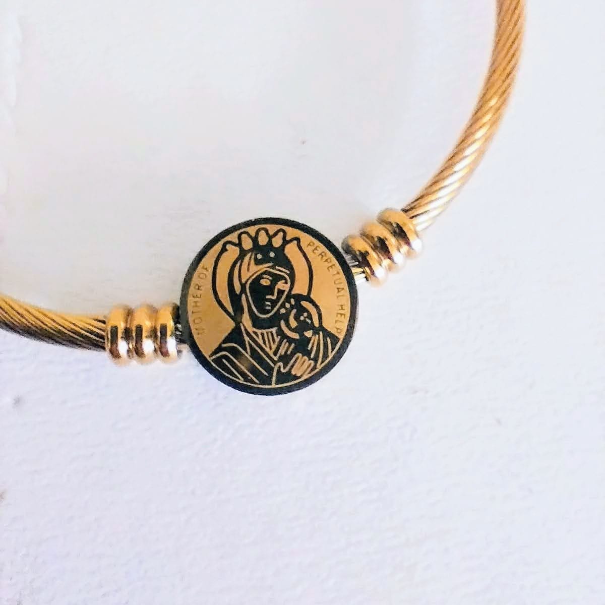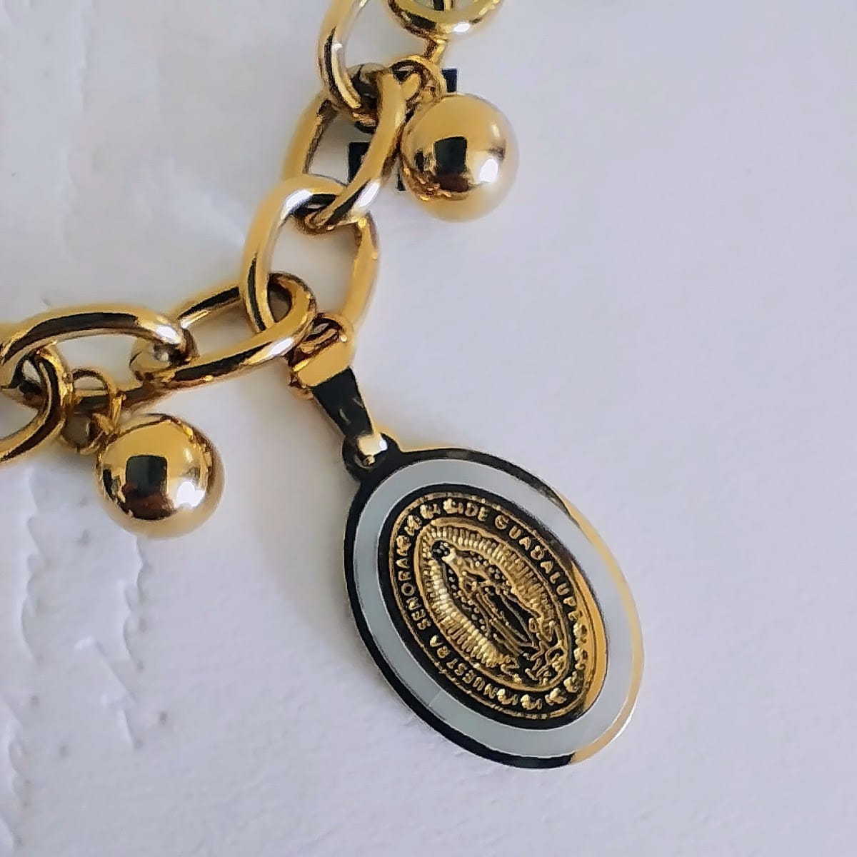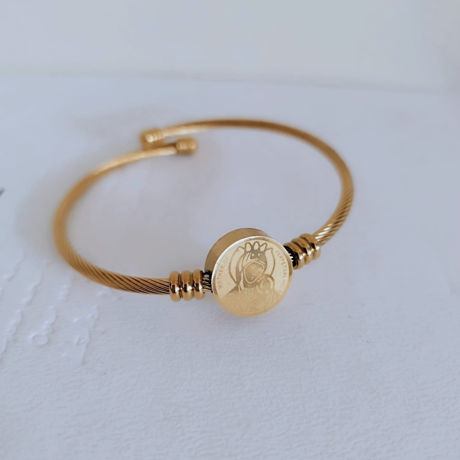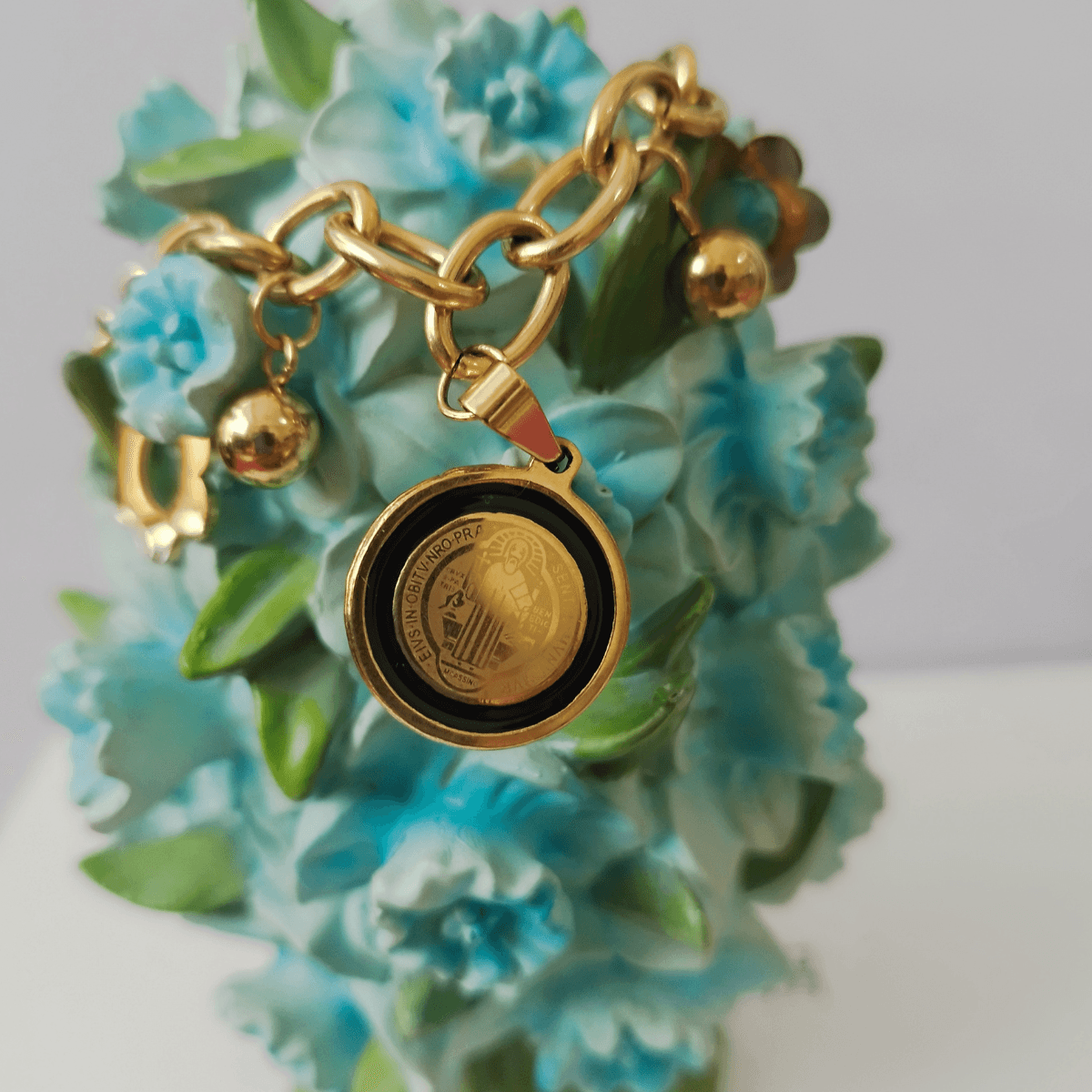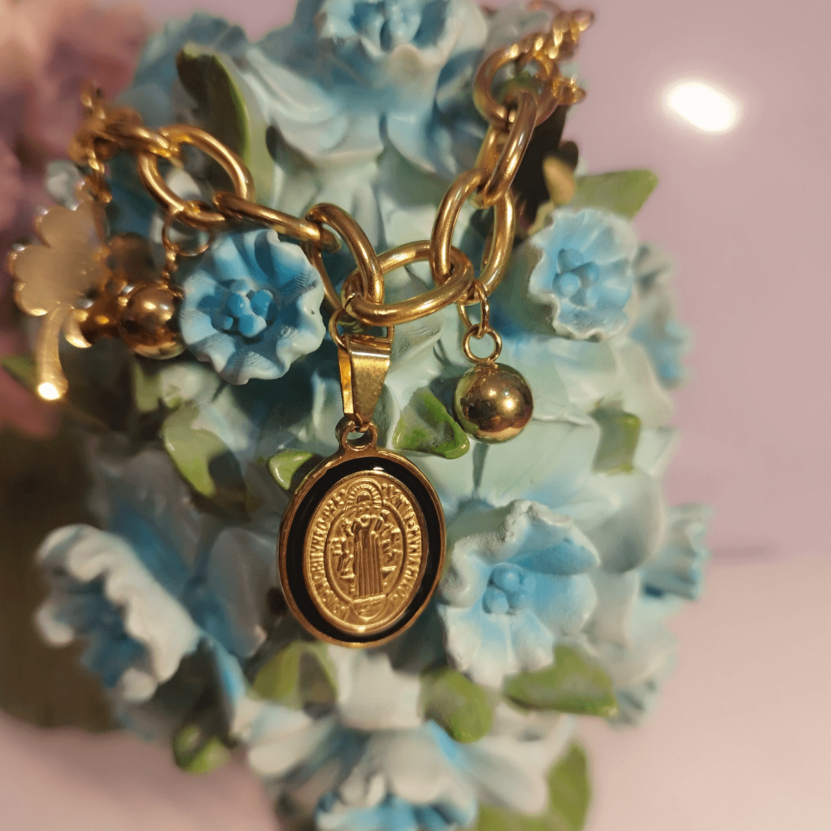 The Gold-Plated Stainless Steel Charm Bracelet combines spirituality and style, featuring a