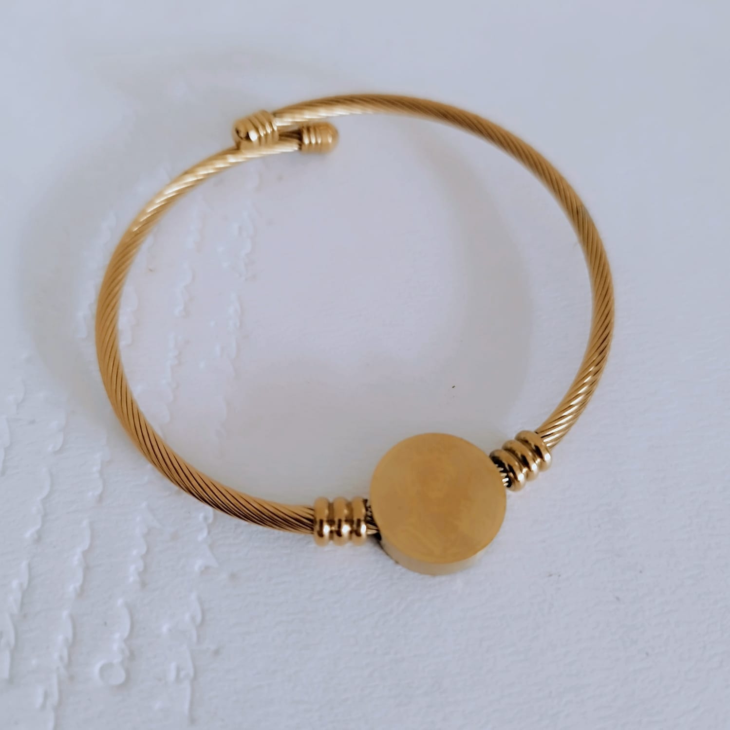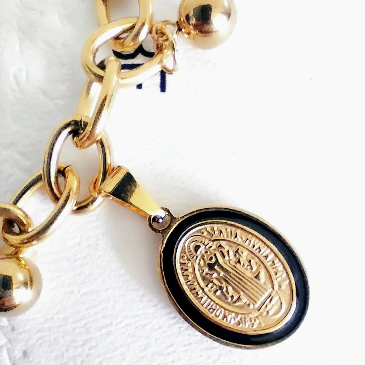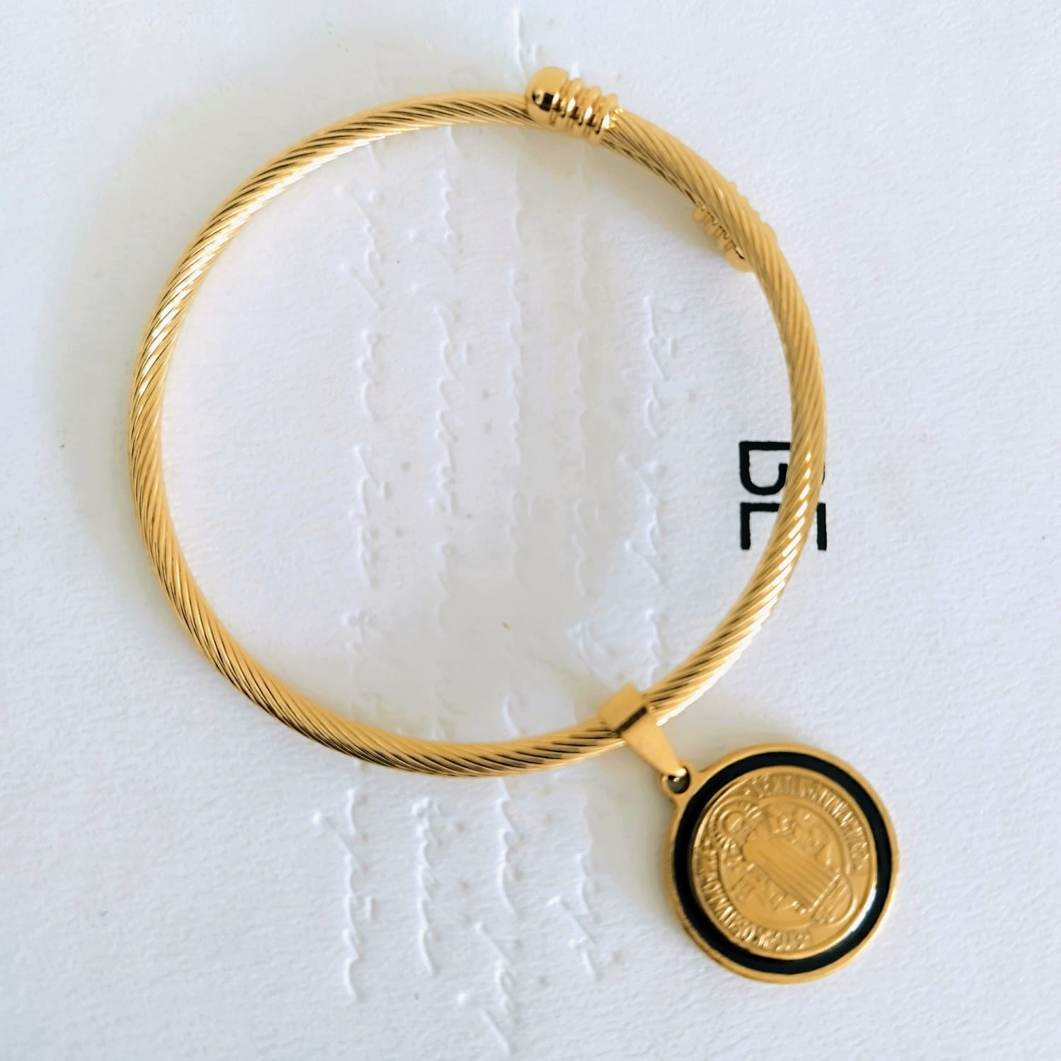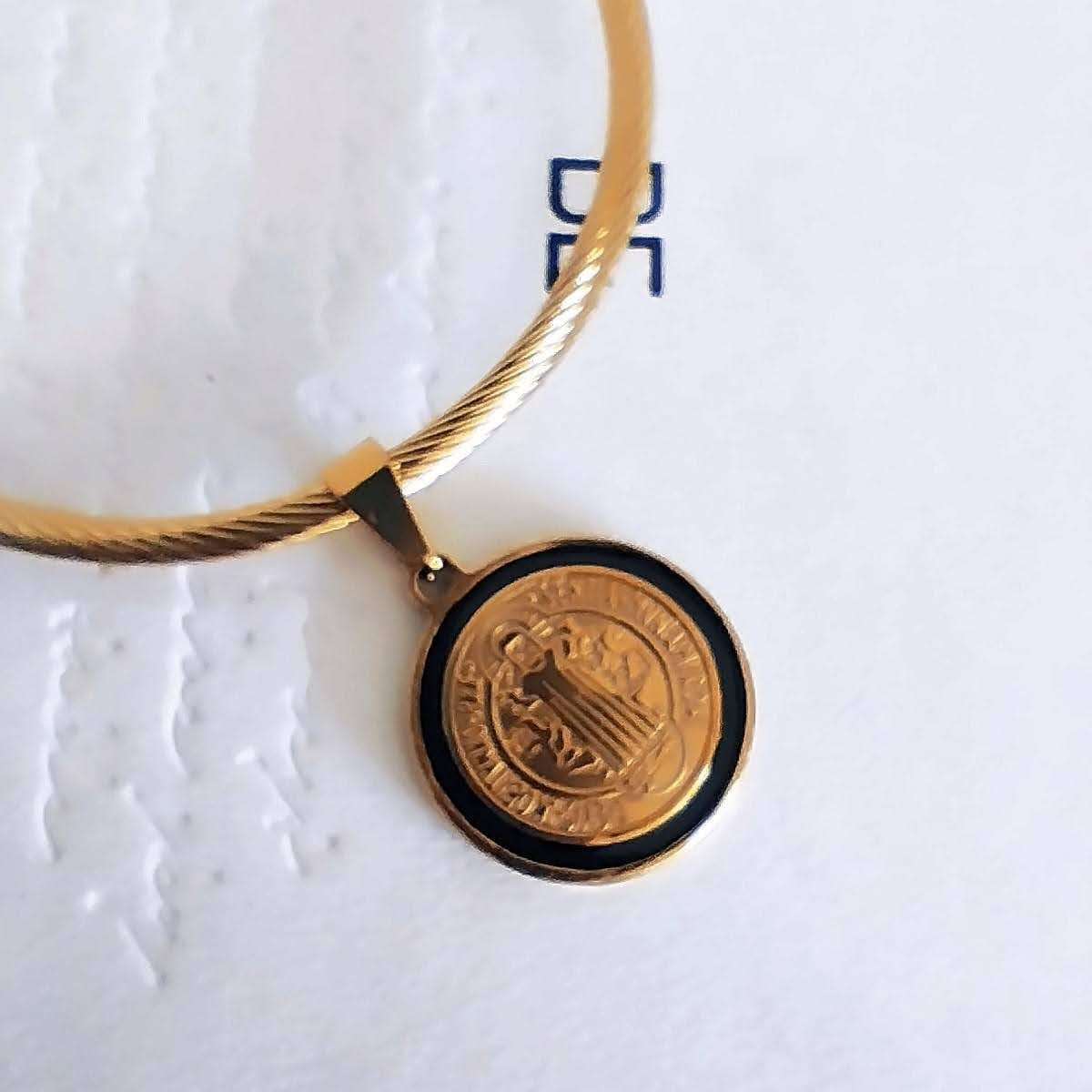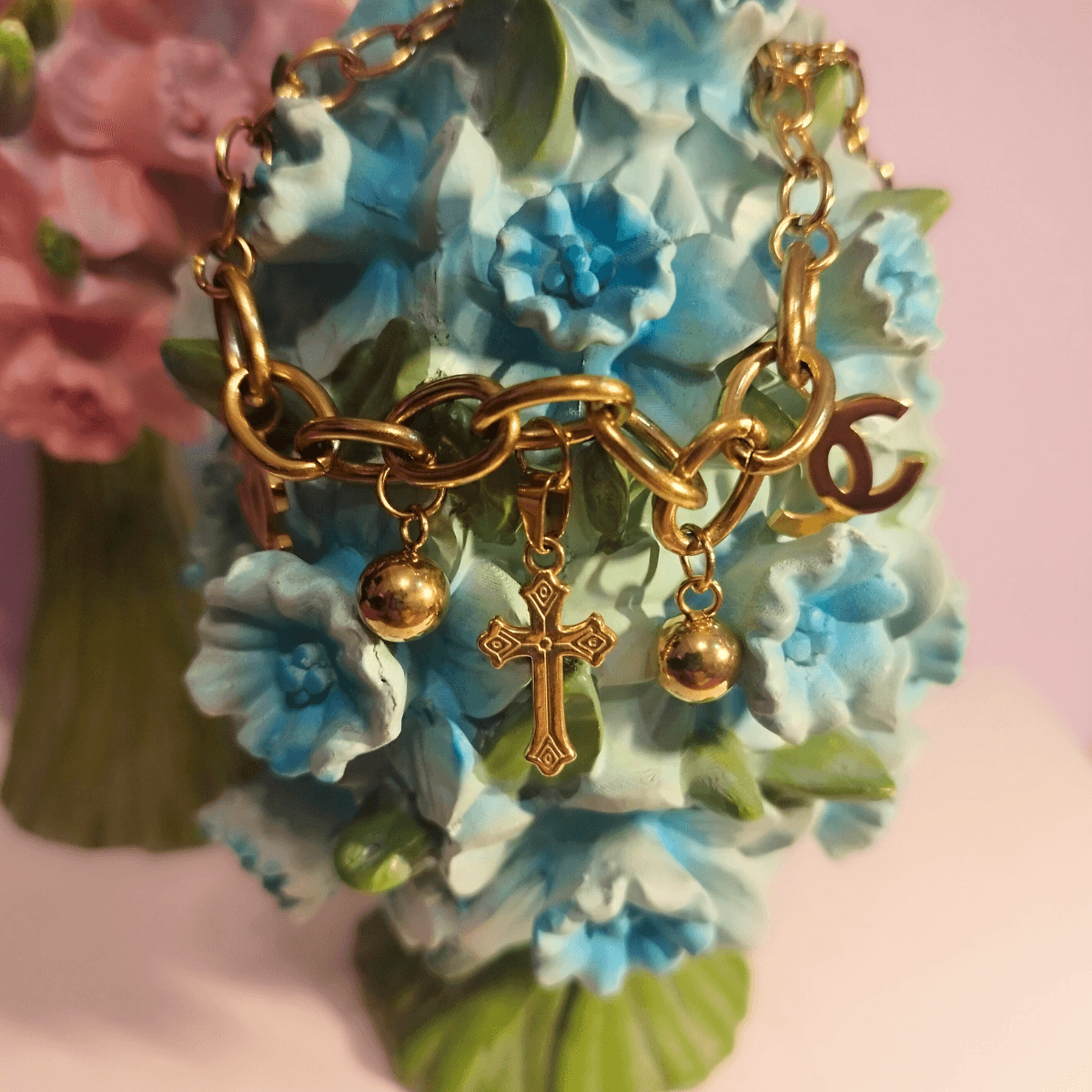 The Gold-Plated Stainless Steel Charm Bracelet combines spirituality and style, featuring a